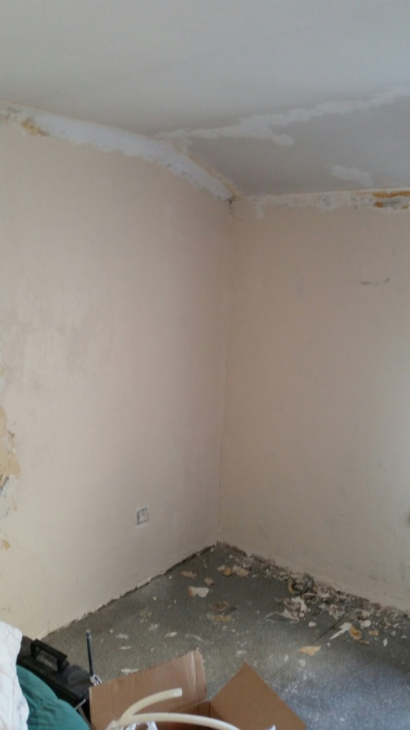 Après avoir débarrassé, j’hésite à casser le plâtre … mais ça a l’air de tenir … je fais de l’enduit par-dessus, tout va bien.